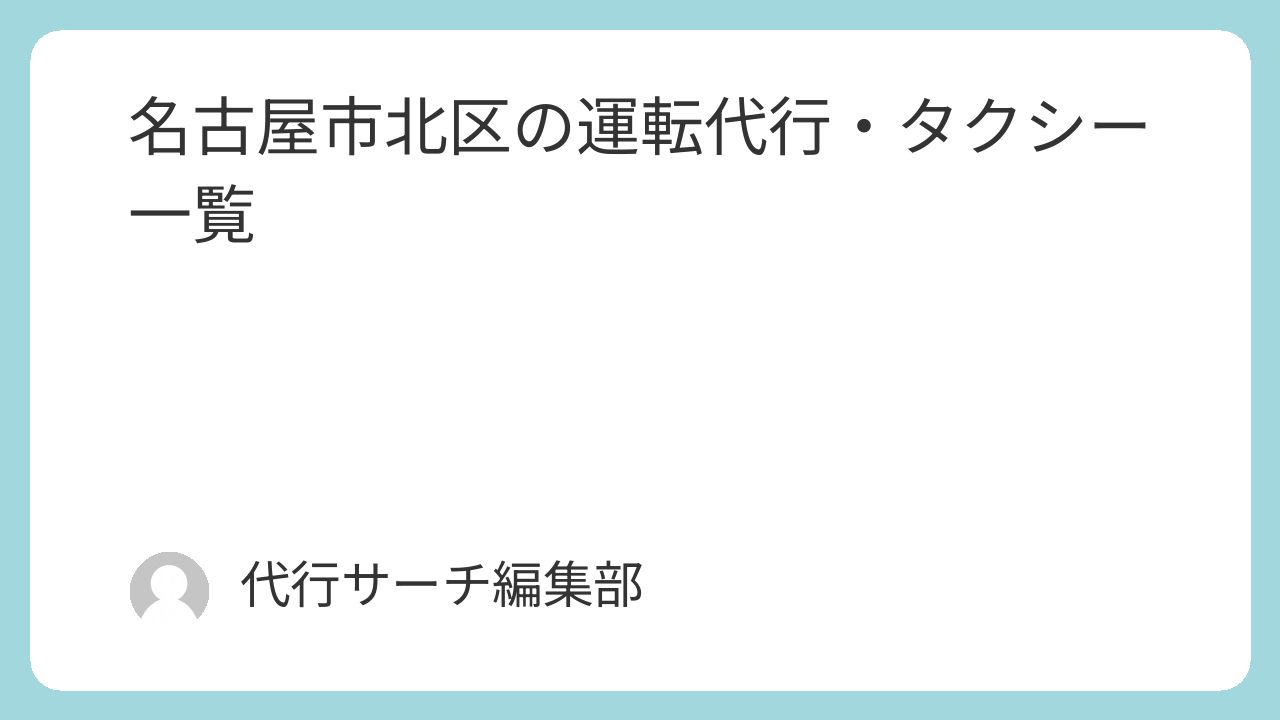 このページでは、名古屋市北区に所在地が登録されている運転代行・タクシーを掲載しています。