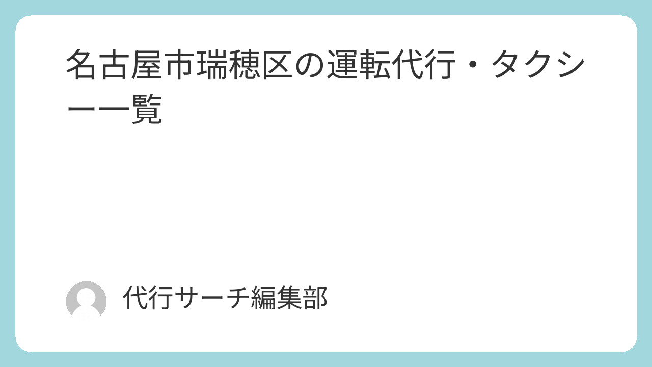 このページでは、名古屋市瑞穂区に所在地が登録されている運転代行・タクシーを掲載しています。