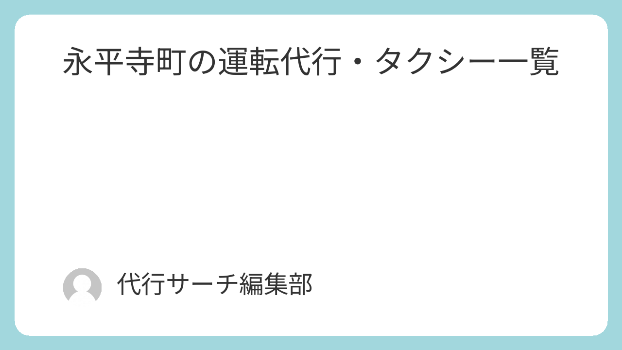 このページでは、永平寺町に所在地が登録されている運転代行・タクシーを掲載しています。