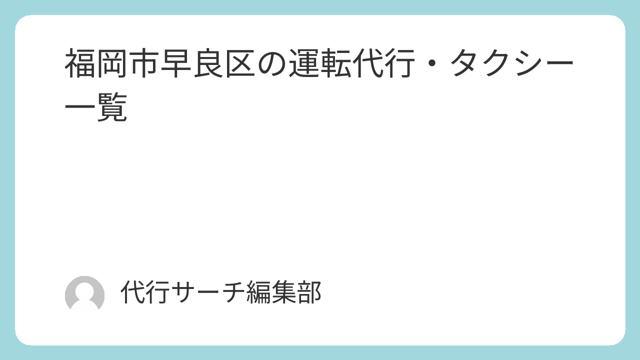 このページでは、福岡市早良区に所在地が登録されている運転代行・タクシーを掲載しています。
