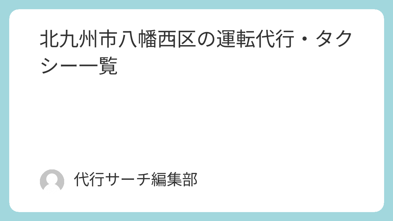 このページでは、北九州市八幡西区に所在地が登録されている運転代行・タクシーを掲載しています。
