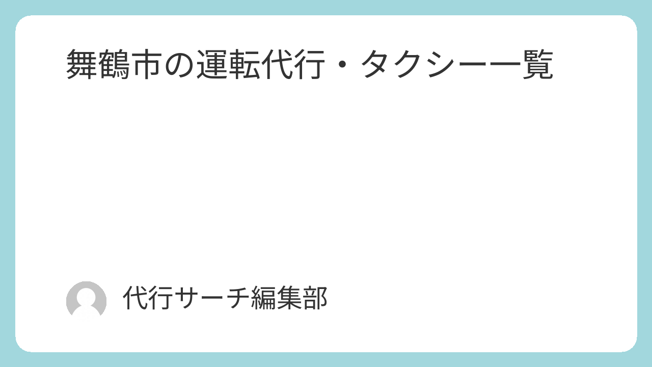 このページでは、舞鶴市に所在地が登録されている運転代行・タクシーを掲載しています。