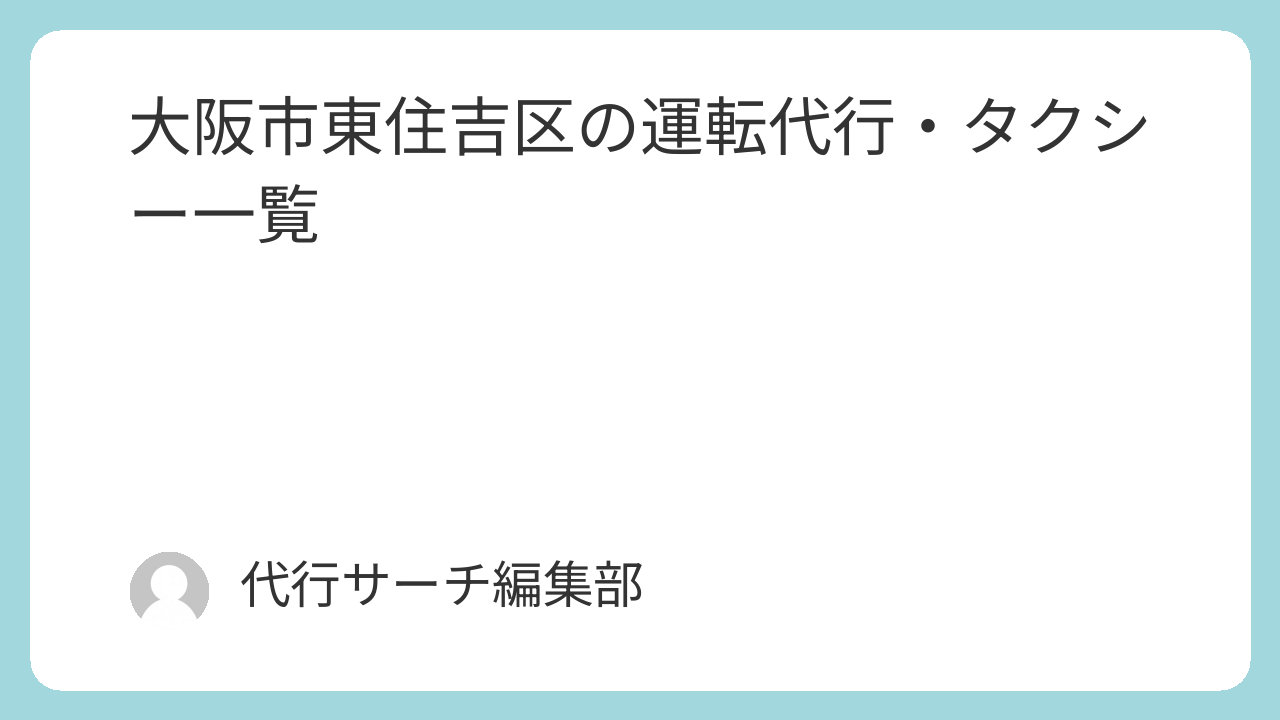 このページでは、大阪市東住吉区に所在地が登録されている運転代行・タクシーを掲載しています。