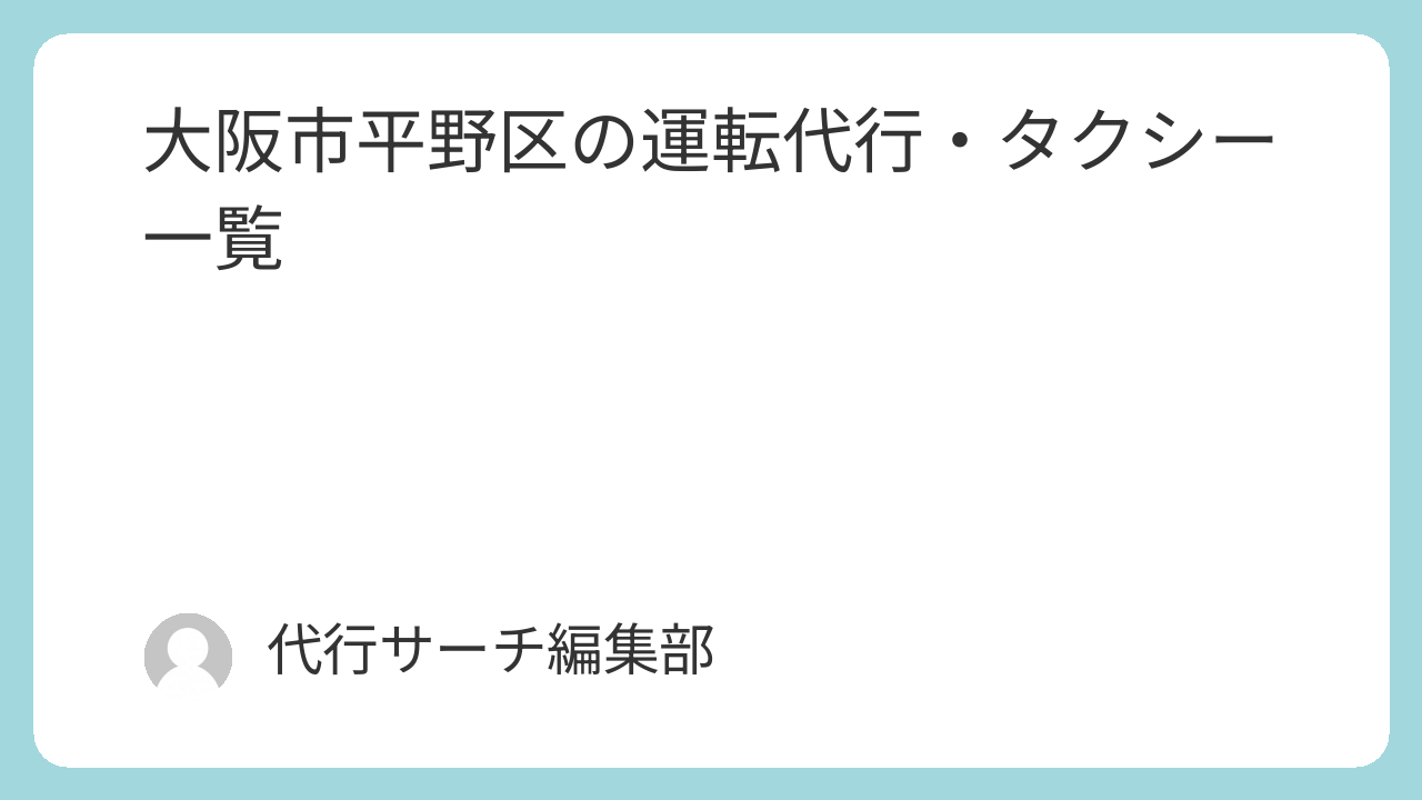 このページでは、大阪市平野区に所在地が登録されている運転代行・タクシーを掲載しています。