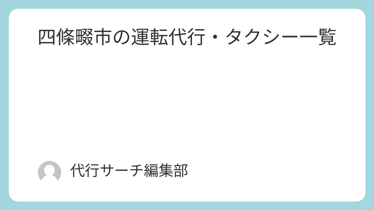 このページでは、四條畷市に所在地が登録されている運転代行・タクシーを掲載しています。