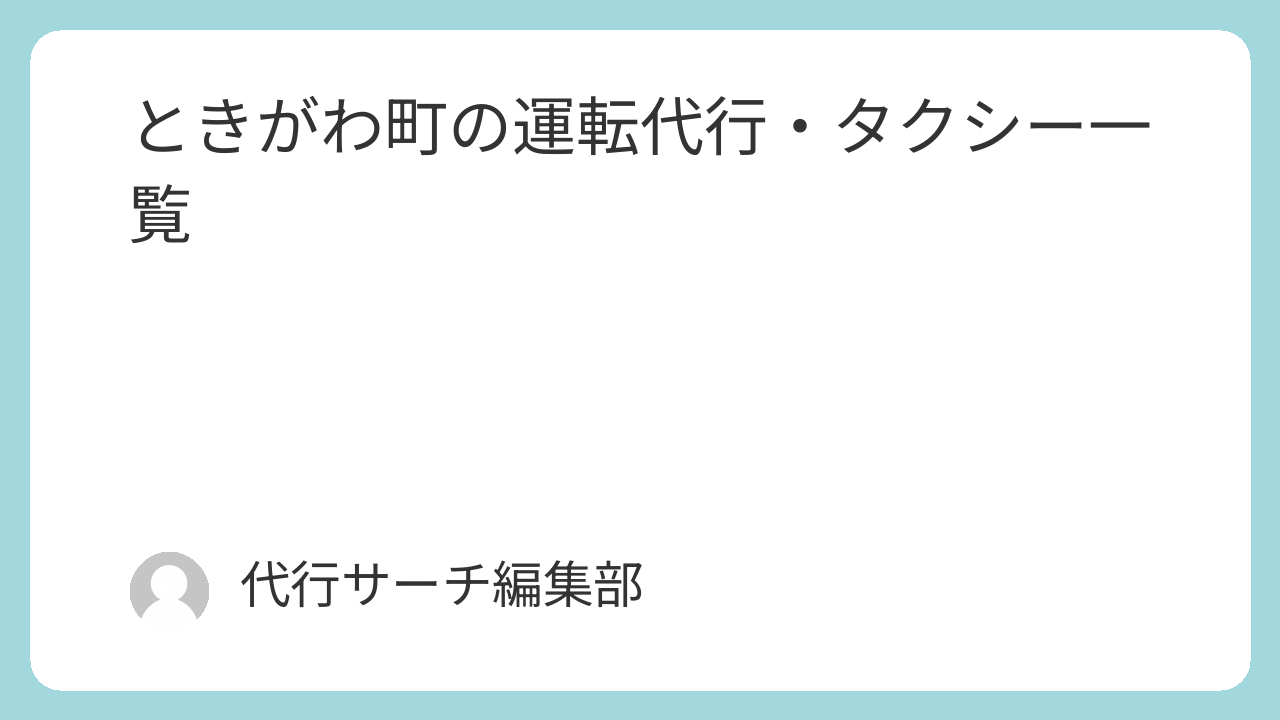 このページでは、ときがわ町に所在地が登録されている運転代行・タクシーを掲載しています。