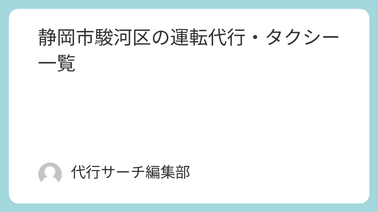 このページでは、静岡市駿河区に所在地が登録されている運転代行・タクシーを掲載しています。